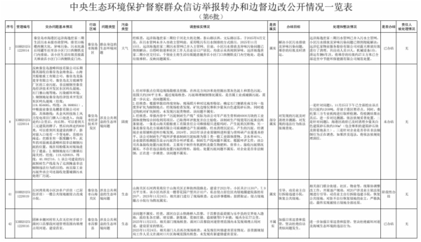 附件:中央生态环境保护督察群众信访举报转办和边督边改公开情况一览表(第六批)