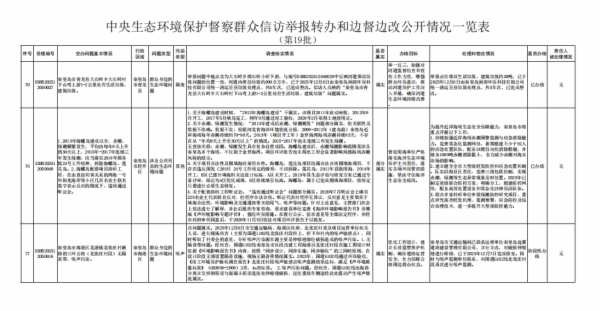 附件:中央生态环境保护督察群众信访举报转办和边督边改公开情况一览表(第十九批)