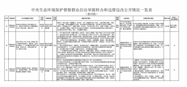 附件:中央生态环境保护督察群众信访举报转办和边督边改公开情况一览表(第二十批)