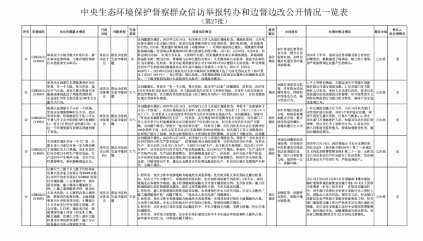 附件:中央生态环境保护督察群众信访举报转办和边督边改公开情况一览表(第二十七批)