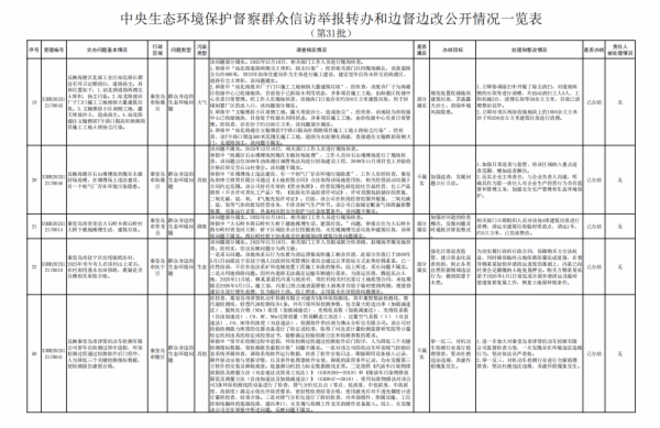 附件:中央生态环境保护督察群众信访举报转办和边督边改公开情况一览表(第三十一批)